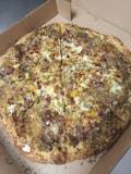 Pepperoni, Italian sausage, ham, bacon, ground beef, ricotta & mozzarella cheese, topped with a sprinkle of sesame.