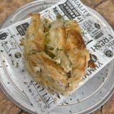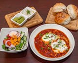 Your choice of Bourkas served with a hard-boiled egg, grated tomato, schug, pickles, and a small side salad.