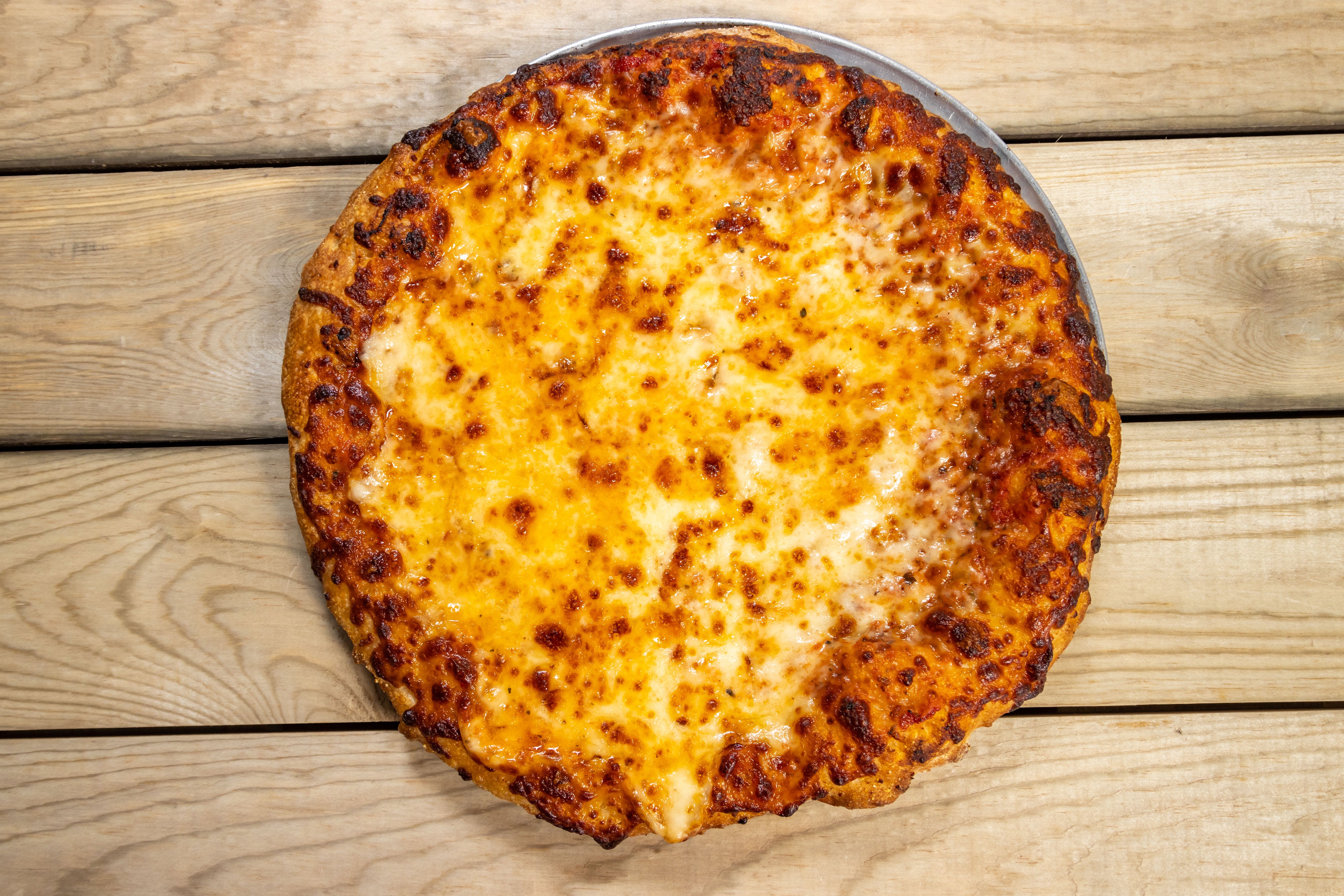 Our cheese is topped with pizza sauce, mozzarella cheese.
