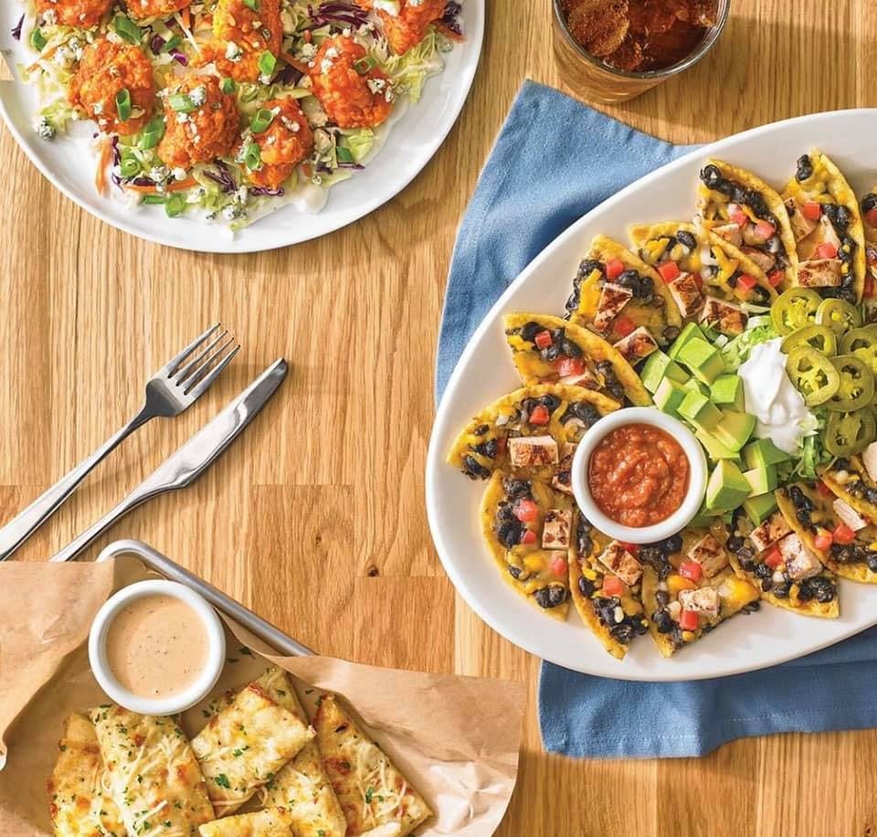 Our signature half flour, half corn tortilla chips, individually topped with cheddar and mozzarella cheeses, refried black beans, and tomatoes. Served with shredded lettuce, jalapeños, sour cream, avocado, and salsa. Serves 3-4 people.
