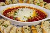 Garlic oil, mozzarella cheese, Roma tomatoes and topped with fresh basil and parmesan cheese.