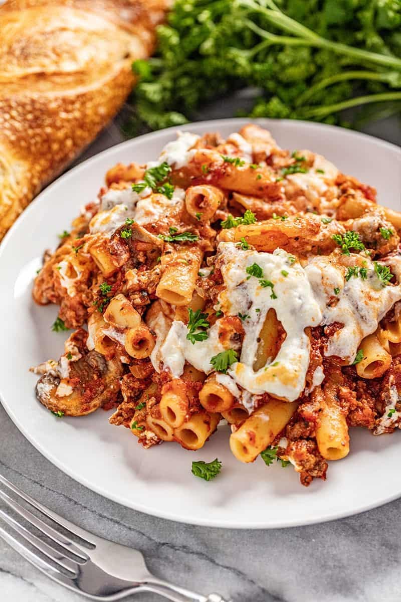 Lasagna, chicken parmesan, and fettuccine alfredo.