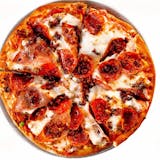 Our signature tomato sauce with fresh provolone, pepperoni, salami ham, and banana peppers