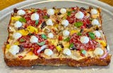 "BUILD YOUR OWN" Detroit-style pizza is a square pizza known for its Light & Airy Crispy Crust, crispy caramelized cheese edges known as the "FRICO", and a marinara sauce applied in stripes or dollops on top of the cheese. It features our in house cheese blend of mozzarella, provolone and often pepperoni, with the cheese spread to the edges to create a signature crunchy, cheesy crust.