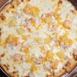 Pronounced chicken pizza, cajun chicken, green chilies, pineapple, sweet, and spicy.