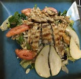 Green leaf lettuce, tomatoes, pepperoncini, black olives & mozzarella cheese.