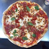 Our margherita pizza with our delicious pepperoni and sausage added with fresh mozzarella cheese