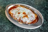 Layers of crispy eggplant, ricotta cheese, tomato sauce, mozzarella cheese.