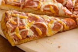 Our original crust topped with traditional red sauce, whole-milk mozzarella, mild cheddar, and premium pepperoni.