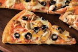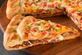 Our original crust topped with traditional red sauce, whole-milk mozzarella, premium pepperoni, Italian sausage, ground beef, sliced mushrooms, mixed onions, green peppers, black olives, and cheddar.