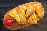 Fresh dough topped with our herb garlic spread, 1/4 pound of whole-milk mozzarella, herb & cheese blend, and mild cheddar cheese served with a side of marinara.