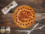 Crafted with a perfectly crisp crust, this pizza is adorned with premium, pepperoni slices that deliver a tantalizing kick. A rich tomato sauce and mozzarella cheeses provide the perfect balance, making each bite a luxurious and flavorful adventure.