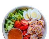 Mixed greens with cherry tomatoes, cucumbers, red onions, croutons, sliced egg, avocado, bacon, cheddar jack cheese, and a cup of our signature buttermilk ranch.