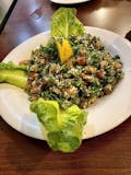 Lettuce, chopped tomatoes, cucumbers, onions mint, sumac, parsley, and toasted pita chips tossed in Lebanese dressing.
