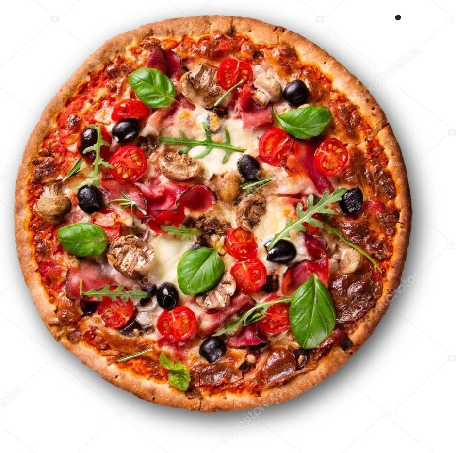 Peppers, onions, mushrooms, black olives, fresh tomatoes, spinach.