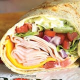 Healthy. Roasted turkey breast, American cheese, romaine lettuce, tomato, red onions, mayonnaise.