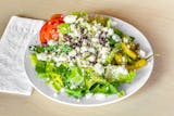 Lettuce, tomatoes, onions, kalamata olives, feta cheese, pepperoncini, oil, & vinegar dressing.
