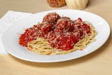 Pasta topped in our homemade meatballs.