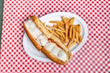 Two 8 oz jumbo lump crab cakes served with a side salad and french fries.