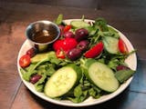 Arugula, spinach, tomatoes, cucumbers, red onions and kalamata olives