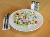 Fresh romaine lettuce, cucumber, tomato & croutons.