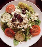 Canadian bacon, Italian sausage, salami, pepperoni, mushrooms, onions, green peppers, black olives, tomatoes & feta cheese.