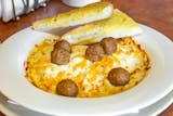 Fettuccine, Alfredo sauce, Meatballs, Cheddar & Mozzarella cheese.