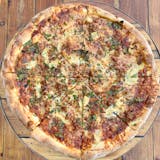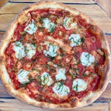 House-made garlic oil base, whole milk mozzarella, Parmesan Reggiano, ricotta, sweet fennel sausage, arugula (no red sauce)