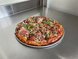 BBQ sauce, Canadian ham, pepperoni, Italian sausage, pineapple, mozzarella & provolone cheese blend.