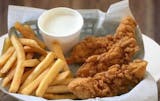 Meat patty, lettuce, tomato and pickles. Served with french fries, pickles and pepperoncini.