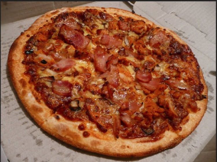 BBQ & ranch as the base topped with cheese, chicken & bacon.