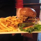 Mason’s made for a hearty appetite. Served with Mason’s made BBQ sauce over smashed potatoes topped with onion straws and a side of steamed veggies.
