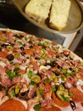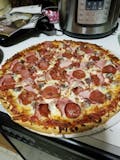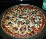 Italian Sausage, Cup-n-Char Pepperoni, fresh mushrooms, onions, green peppers & black olives.