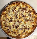 Italian Sausage, Garlic Butter, onion, green pepper, eggs & Bacon topping.