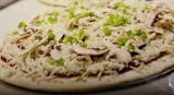 Thin crust, BBQ drizzle & ranch sauce, mozzarella cheese, garlic chicken, bacon & onions.