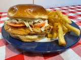 Your Choice of Chicken (Crispy or Grilled) on a Toasted Roll w/ Lettuce, Tomatoes, & Blue Cheese (You Can Also Make It a Combo w/ Fries & a Can of Soda for Only $3 More)