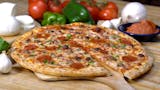 Our thinner but not thin lightly topped pizza with mozzarella, pepperoni, sausage, beef and ham.