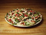 Strips of our thin and crispy crust with chicken or beef, onions, jalapenos, mozzarella, and cheddar cheese. Served with salsa! Take off Chicken and add Beef.